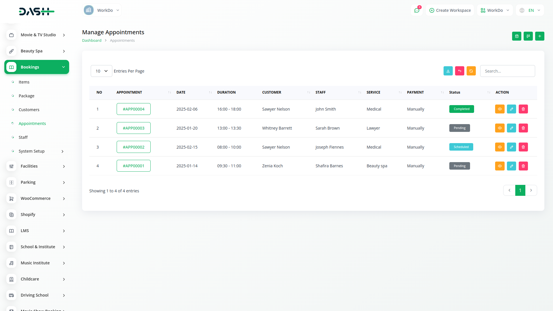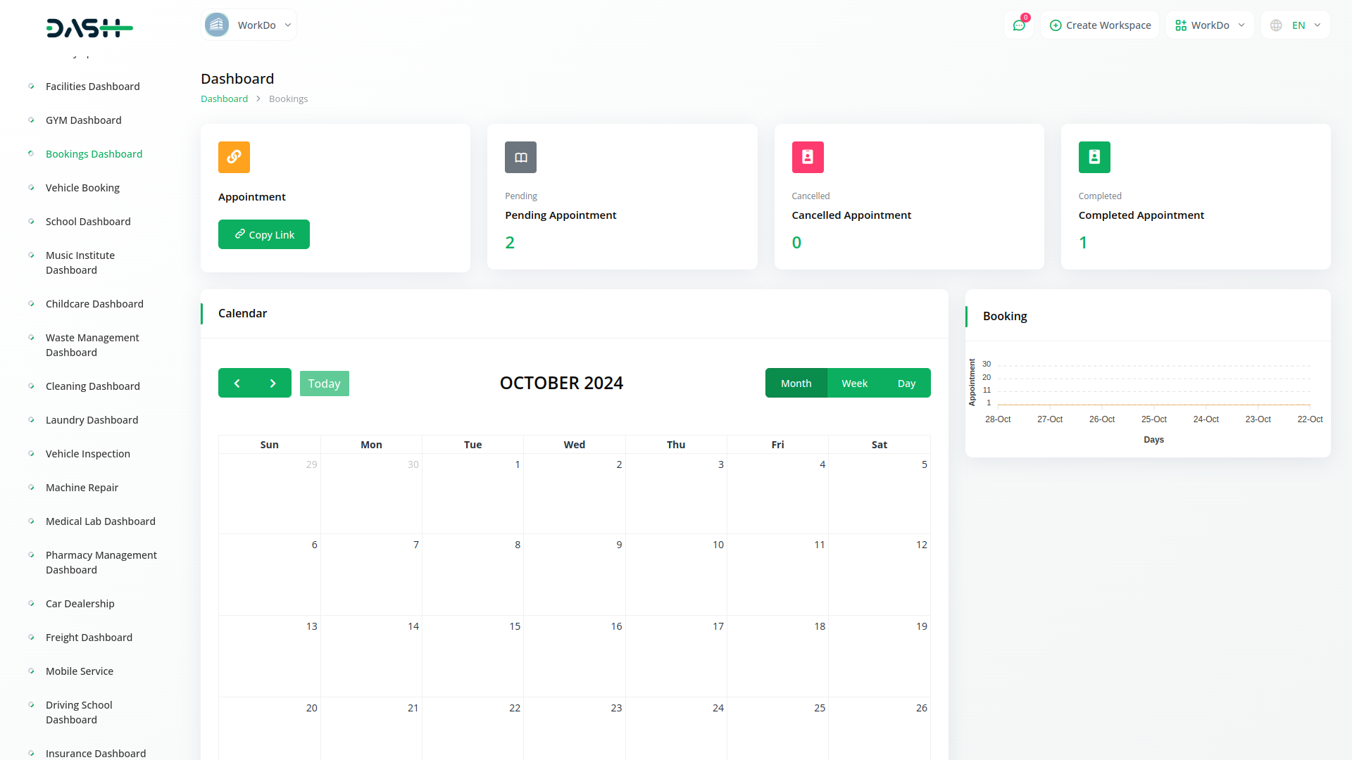 Get valuable insights into your booking trends and business performance with the Dash Saas Bookings Module/s analytics. Track important metrics like appointment numbers, peak booking times, and customer preferences. Use this data to make better decisions about staffing, marketing, and services. Our simple reports and dashboards give you a clear view of how your booking system is doing, helping you improve efficiency and profitability. Plus, you can manage bookings from both the backend and frontend, giving you complete control and flexibility over your scheduling process.
